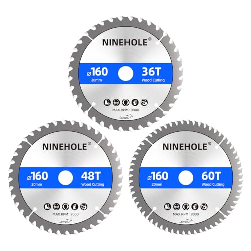 - Enthalten: 3 Stück Kreissägeblätter, Durchmesser: 160mm; Dorngröße: 20mm (Reduzierringe auf 16mm) ; Hartmetallzähne: 60. Hervorragenden Preis-Leistungsverhältnis